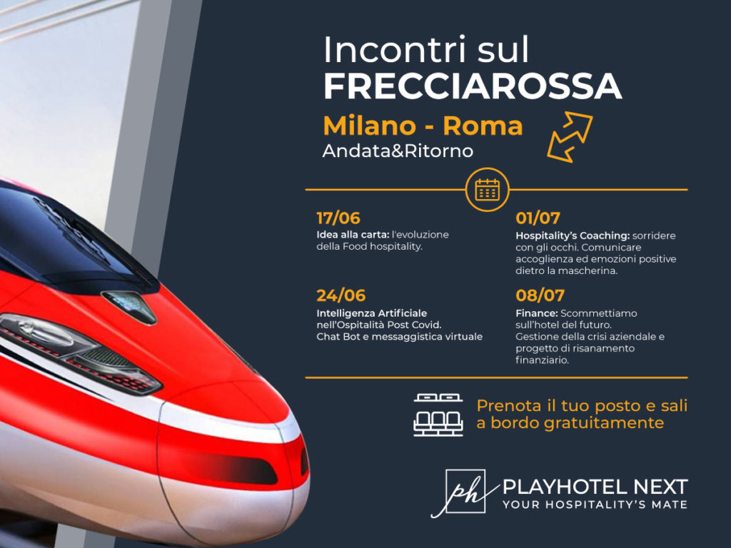 Dal 17 Giugno si viaggia con Playhotel Next sul treno della ripartenza scoprendo come il mondo dell’hotellerie sta affrontando la nuova fase del settore, tra criticità e punti di forza del Made in Italy del turismo. A partire da oggi, ogni mercoledì verrà approfondito un tema strategico per il re-star del comparto alberghiero con gli ultimi trend dell’hospitality con il nuovo format “Incontri sul Frecciarossa” che mette a confronto i due mondi uniti dall’alta velocità: Roma e Milano.