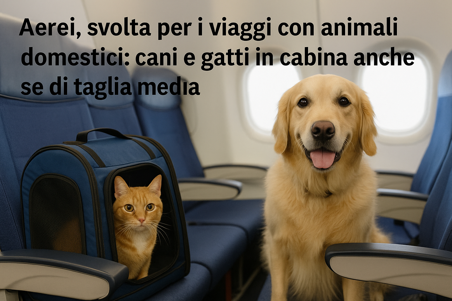 Dal 12 maggio 2025, l’Enac (Ente Nazionale per l’Aviazione Civile) introdurrà nuove regole che permetteranno a cani e gatti di viaggiare in cabina anche se di taglia media o superiore. Finora, secondo le regole attuali per cani e gatti in aereo, solo gli animali di piccola taglia, con un peso massimo di 7-10 kg trasportino incluso, potevano essere ammessi in cabina.