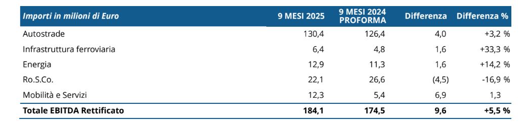 Nel 2025 i risultati del settore autostradale saranno guidati dall’andamento del traffico, in assenza di incrementi tariffari, mentre quelli del settore Energia saranno determinati dallo sviluppo della capacità installata di impianti fotovoltaici.