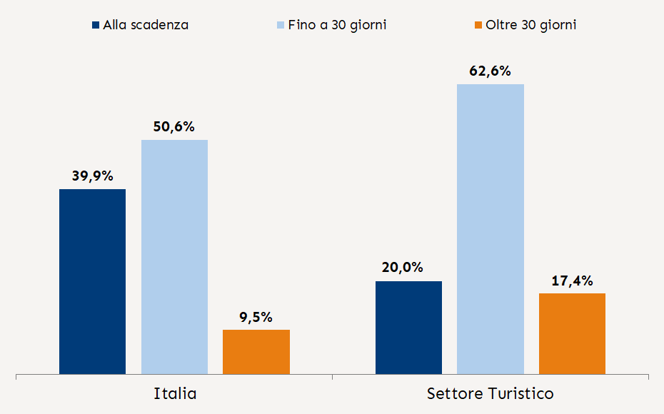 Sebbene il 2024 segni un miglioramento rispetto al periodo della pandemia, la regolarità dei pagamenti nel settore turistico mostra un progressivo deterioramento dal 2022, aggravato dal contesto economico incerto e dalla forte concorrenza.