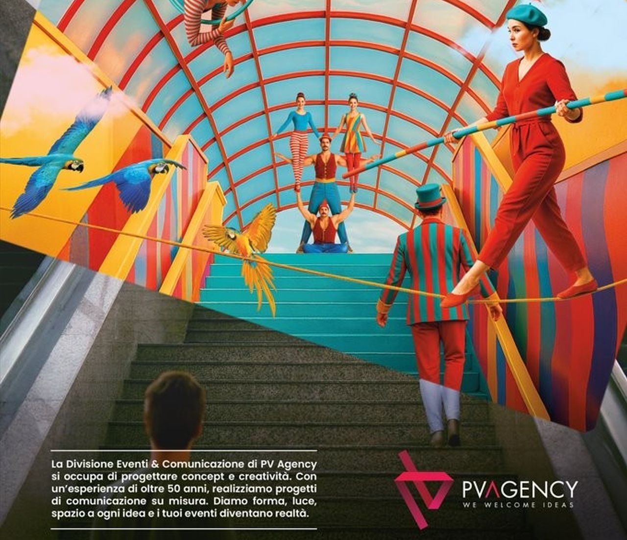 “Abbiamo voluto raccontare l’anima della divisione Events Communication partendo da un’immagine semplice ma potente: una scala anonima sotto un tunnel grigio che, incorniciata dal badge PV, si trasforma in scena. È questo l’“effetto PV”: la capacità di dare forma, luce e spazio a un’idea e renderla evento. Il nostro lavoro è stato quello di tradurre questa visione in una campagna che sorprendesse, emozionasse e mostrasse cosa significa davvero progettare creatività su misura” ha dichiarato Francesco Emiliani, Direttore Creativo dell’agenzia cui PV si è affidata.