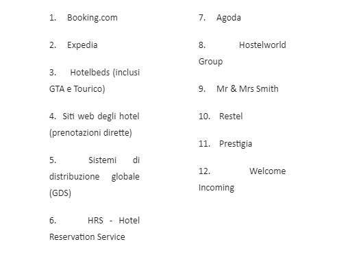 In base all’importo lordo delle entrate dei clienti di SiteMinder in Italia, i canali più redditizi del 2018 sono stati: