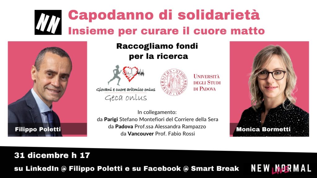 Per la nona puntata, in onda il giorno di San Silvestro, l’evento inoltre sarà all’insegna della solidarietà, una novità che accompagnerà anche la programmazione futura: in diretta dal profilo di Filippo Poletti, giovedì 31 dicembre 2021 dalle ore 17 alle 17:45 il programma sarà interamente dedicato a promuovere la raccolta di fondi per la cura della cardiomiopatia aritmogena del ventricolo destro, nota come la “malattia del cuore matto” di cui diversi sportivi come il calciatore Piermario Morosini e tante altre persone per lo più in giovane età sono stati vittime. Agli oltre 13 milioni di professionisti italiani presenti su LinkedIn sarà chiesto di sostenere l’associazione onlus di Padova GECA (Giovani e Cuore Aritmico).