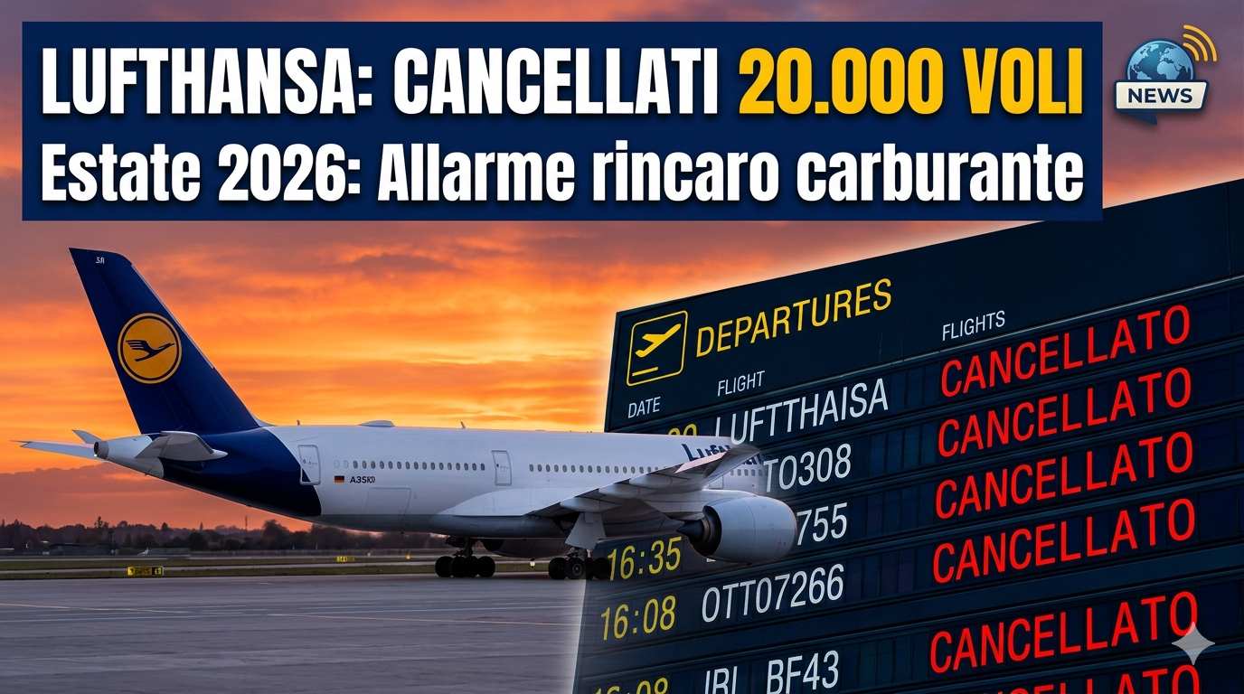 Non sarà un’estate serena per chi ha programmato di volare con la “Cicogna” tedesca. Il Gruppo Lufthansa ha infatti annunciato la cancellazione di ben 20.000 voli a corto raggio previsti tra maggio e ottobre 2026. La causa? Il cocktail esplosivo di geopolitica e costi energetici, vale a dire il raddoppio del prezzo del kerosene innescato dal recente conflitto in Iran, un’eventualità paventata proprio ieri dall’UE, che ha rassicurato sulla disponibilità di carburante, ma ha messo in guardia sulle possibili conseguenze dell’aumento dei costi.